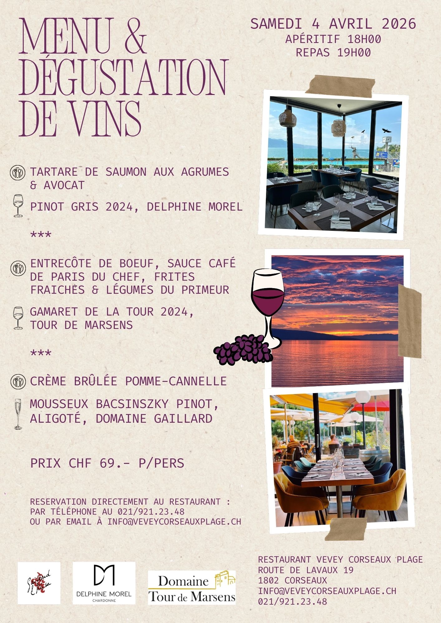 » Situé sur les bords du Léman, le restaurant de Vevey Corseaux Plage, vous accueille dans un cadre chaleureux et idyllique «